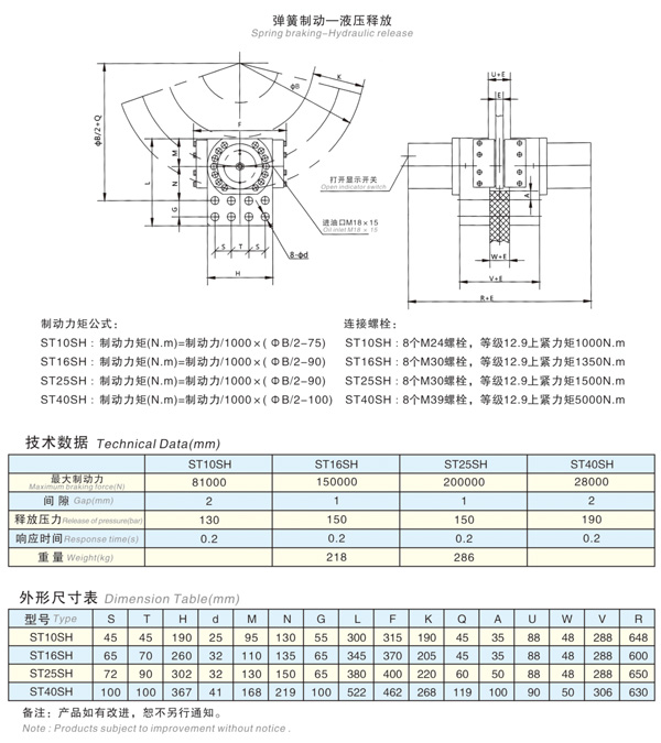 ST10SH ST16SH ST25SH ST40SH液壓失效保護(hù)制動(dòng)器